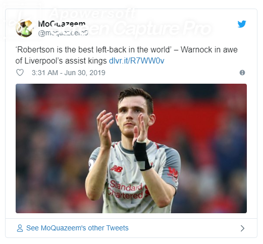 วิเคราะห์อย่างเห็นภาพชัดว่าทำไม แอนดรูว์ โรเบิร์ตสัน และ เทรนท์ อเล็กซานเดอร์-อาร์โนลด์ ถึงได้เล่นอย่างมั่นใจไร้แรงกดดันตลอดซีซั่นที่ผ่านมา แอนดรูว์ โรเบิร์ตสัน กับ เทรนท์ อาร์โนลด์ คือสองนักเตะที่ระเบิดฟอร์มได้อย่างน่ายกย่องให้กับ ลิเวอร์พูล ตลอดซีซั่นก่อน วอร์น็อค กล่าว และด้วยความที่ทั้งคู่ได้รับการปกป้องจากผู้เล่นมิดฟิลด์เช่น ฟาบินโญ, มิลเนอร์, ไวนัลดุม, เฮนเดอร์สัน ซึ่งทำหน้าที่อย่างสมบูรณ์แบบ เราจึงเห็นความมั่นใจในการเติมเกมรุกและครอสบอลเข้าสู่พื้นที่สุดท้ายเยอะมากจนนับครั้งไม่ถ้วน พอไม่ต้องกดดันกับเกมรับ การวิ่ง การเปิดบอลก็จะออกมาไหลลื่นมีประสิทธิภาพสูงสุด เพราะผู้เล่นตำแหน่งฟูลแบ็คจะออกอาการวิตกกังวลง่ายกว่าคนอื่น ๆ หากตกอยู่ในภาวะห่วงหน้าพะวงหลัง ร็อบโบ้ กับ เทรนท์ ได้รับความช่วยเหลือจากเพื่อนคนอื่น ๆ จึงปลดปล่อยความสามารถของตัวเองออกมาได้อย่างเต็มที่ ซึ่งก็ต้องชม เยอร์เก้น คล็อปป์ ที่ใส่ใจในรายละเอียดต่าง ๆ เหล่านี้ด้วยเช่นกัน